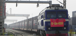 5月29日,由上海铁洋多式联运有限公司运输的44个20尺标箱,总计近千吨聚酯切片搭乘渝新欧“重庆—巴库线路首发班列”,从中国重庆奔赴阿塞拜疆巴库。