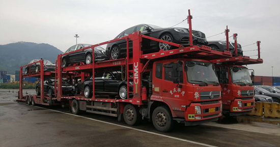 The photograph of imported vehicles arriving in Chongqing: